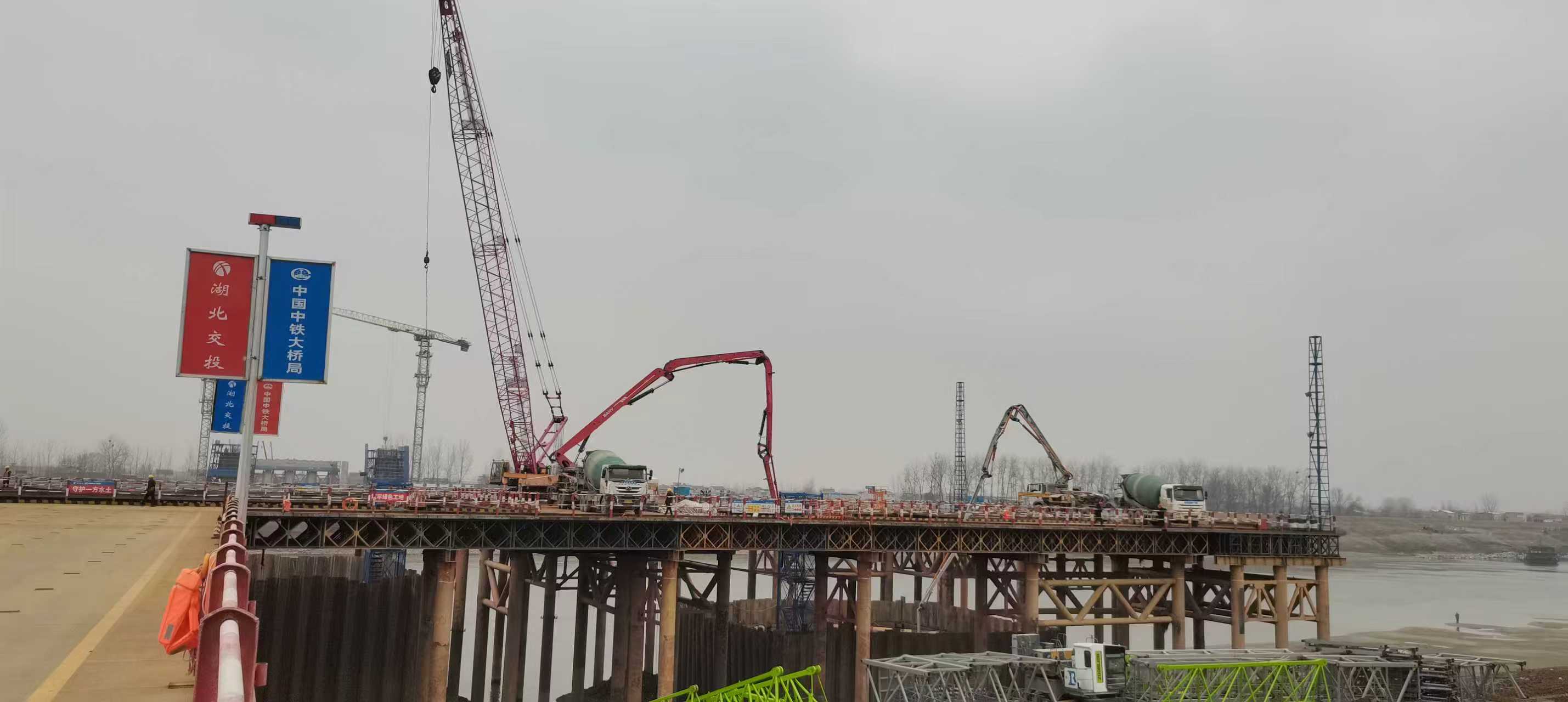 近日,由中建新材提供外加剂技术支持与全流程材料服务的武汉都市圈环线高速公路孝感南段关键工程——城隍汉江特大桥,顺利完成右幅承台混凝土一次性浇筑,标志着该项目全面转入主桥塔柱施工新阶段。