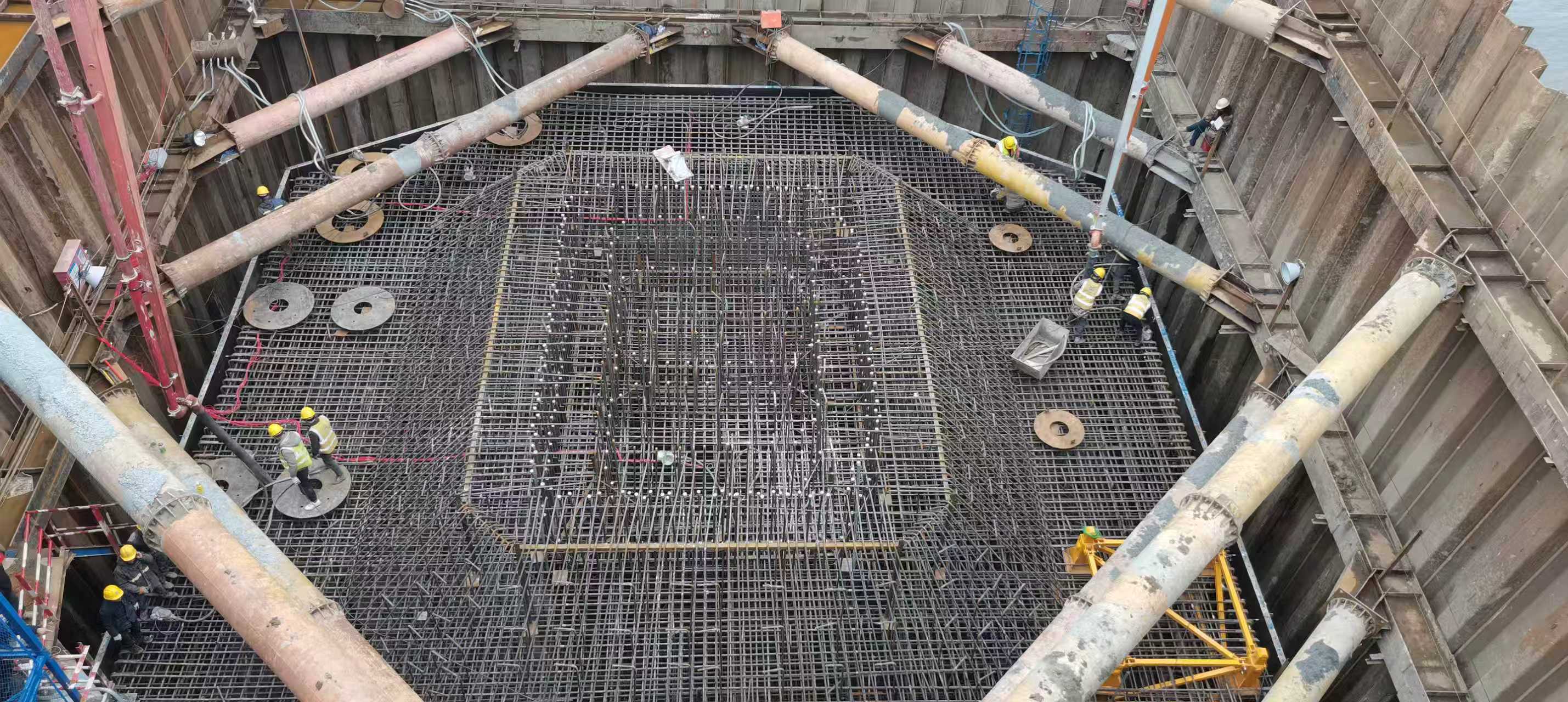 该承台为整体式八边形结构,厚5米、长20.1米、宽18.7米,一次性浇筑方量达1669.4立方米,相当于填满一座标准泳池,是全线体积最大的桥梁承台。大体积混凝土施工面临内部温控难、防裂要求高、连续作业时间长等重大挑战,对混凝土工作性、耐久性提出了极高要求。